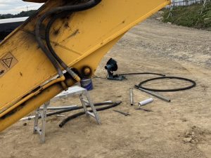 ブームからアームへ繋がるホースの製作交換修理を承りました。