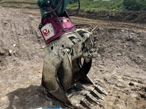 コベルコ本体に、マツモトシステムエンジニアリングの木材カッターです。